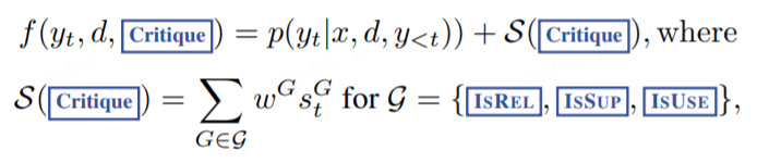 | ISREL | x,d | relevant,irrelevant | 检索到的文档d是否提供了有助于解决问题x的有关信息 |