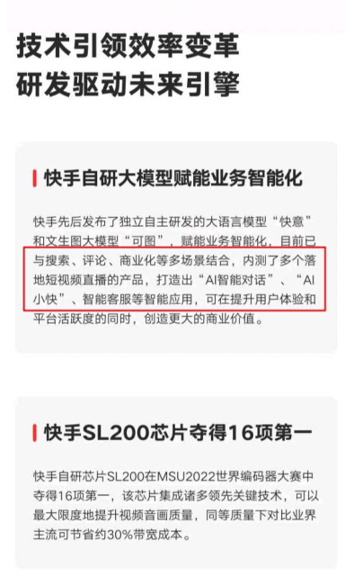 快手:声称其自研快意大模型已经用于智能客服场景